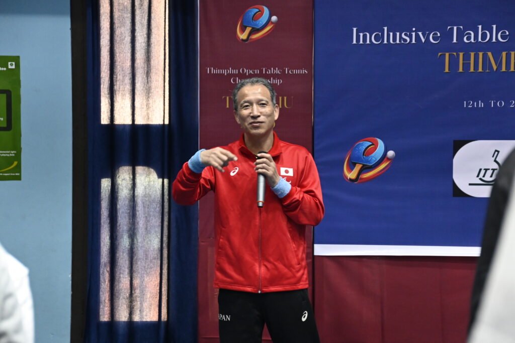 The championship featured an exhibition match between Mr. Leki Dorji, currently ranked Bhutan’s number one table tennis player, and Mr. Katsuyoshi Yagi,he is classified in Class 7 and is currently world ranked second in his category and ranked top one is Asia.